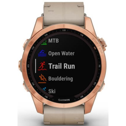 Garmin Fenix 7s Sapphire Solar Rose Gold Titanium / Limestone Leather Band